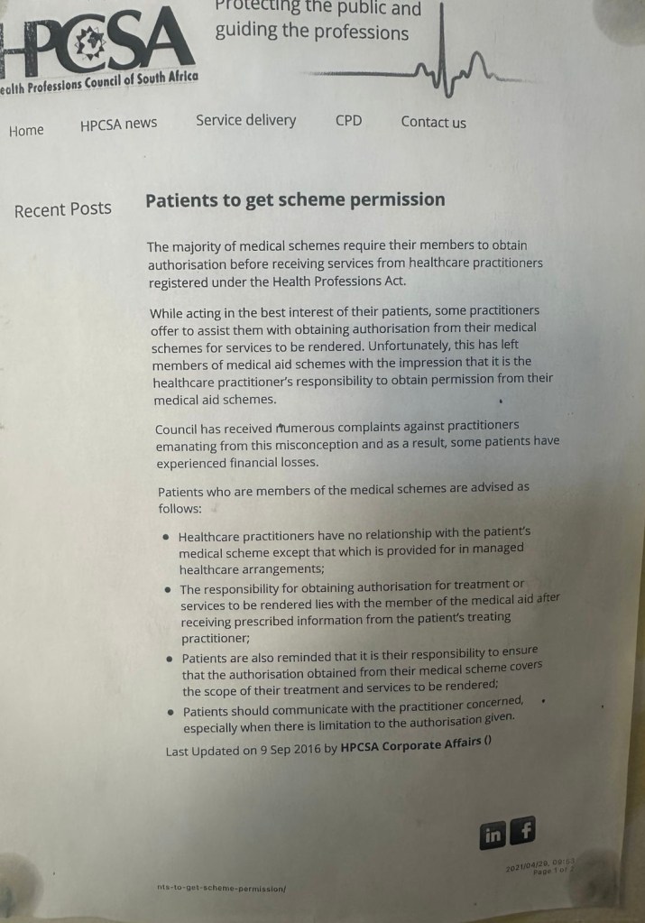 Billing types: practitioner fees – HPCSA