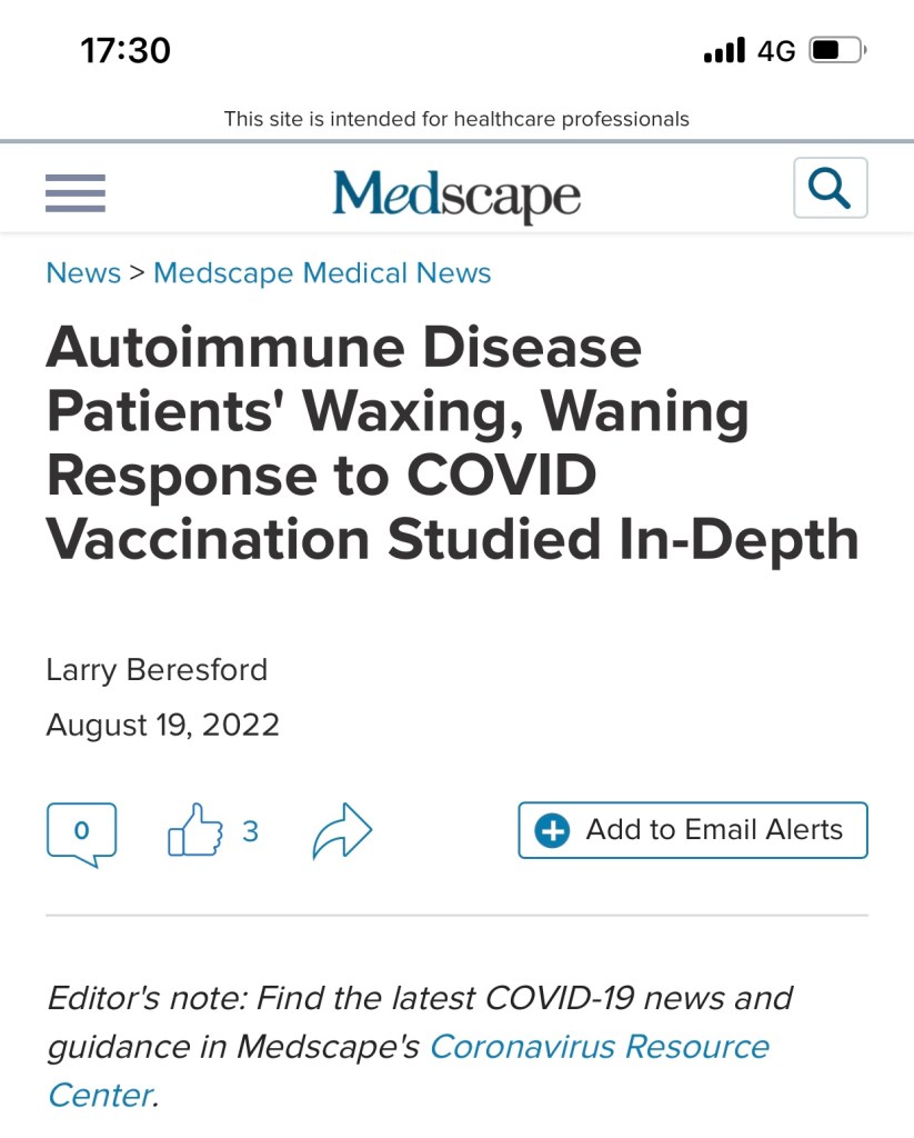 Immune system & COVID-19 18.9.22: https://theconversation.com/ive-had-covid-and-am-constantly-getting-colds-did-covid-harm-my-immune-system-am-i-now-at-risk-of-other-infectious-diseases-188899 19,8.22: https://www.medscape.com/viewarticle/979521 22.6.2022: https://onlinelibrary.wiley.com/doi/10.1111/imr.13089 15.5.2022: https://businesstech.co.za/news/trending/586586/how-omicron-infection-turbo-charges-vaccinated-peoples-immunity/ 12.5.2022: https://www.news-medical.net/news/20220512/Study-finds-recent-influenza-vaccination-is-associated-with-an-appreciable-reduction-in-the-risk-of-SARS-CoV-2-infection-and-COVID-19-severity.aspx https://www.medscape.com/viewarticle/972647 28.2.2022 https://www.weforum.org/agenda/2022/02/study-regular-exercise-can-prevent-death-from-covid-19-by-up-to-42/ 21.4.2021 https://theconversation.com/exercise-boosts-immunity-and-makes-vaccines-more-effective-new-study-159248 Population Immunity and Covid-19 Severity with Omicron Variant in South Africa nejmoa 24.2.2022.pdfDownload Novel antibody helps block COVID transmission in cells, finds study